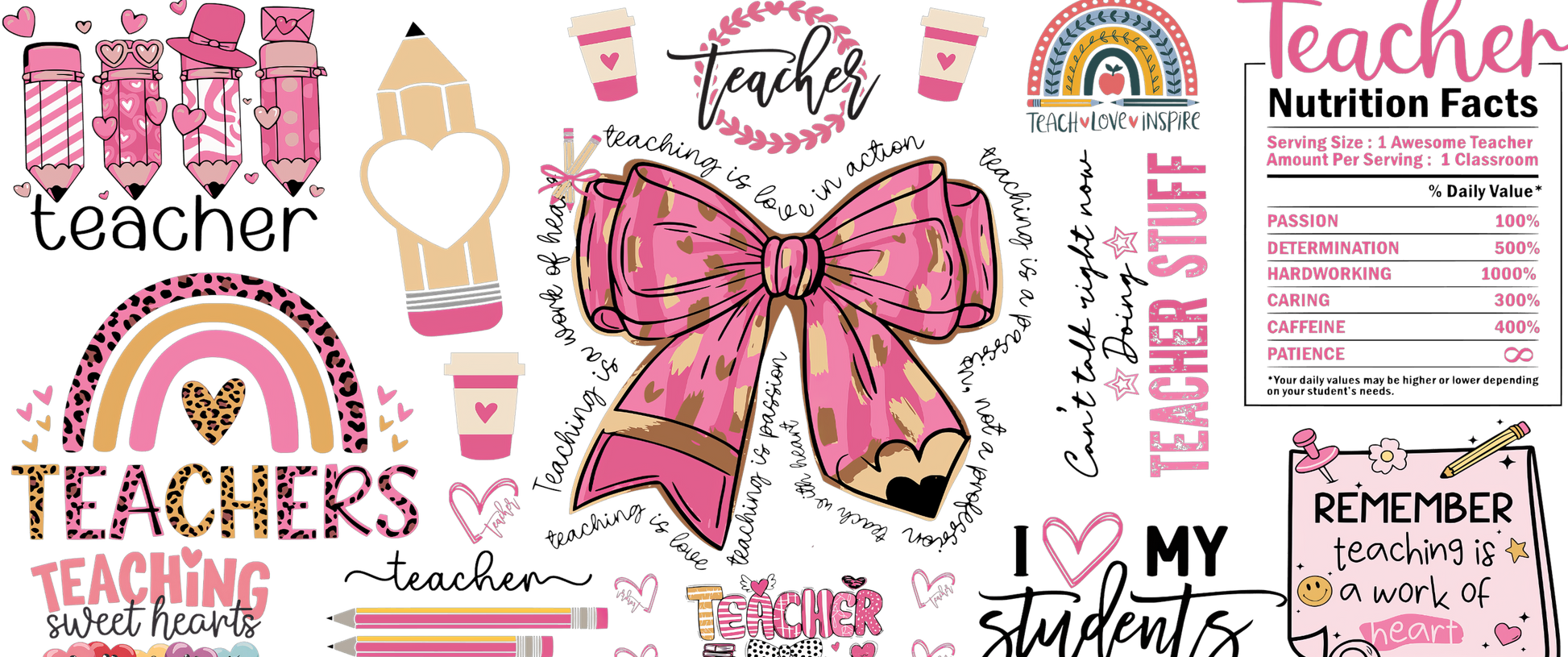 Coquette Pink Teacher | UV DTF Wrap for Cups | Ready to Apply Permanent